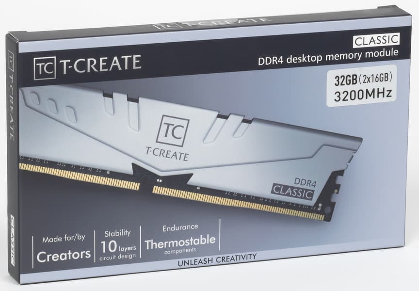 Пока же познакомимся с одним из характерных представителей направления. Серия T-Create Classic в ассортименте TeamGroup — как раз продукты, ориентированные на «простое» использование в штатном режиме. Кому хочется чего-то большего — T-Create Expert, где уже возможны нештатные частоты и дополнительные настройки. А для настоящих энтузиастов — линейка T-Force Xtreem (с одним представителем которой мы уже знакомы). Там уже и частоты до 4,5 ГГц, и подсветка в части моделей — все очень похоже на аналогичные продукты «для энтузиастов». Но, поскольку спрос на определенный «средний класс» (не самые простые бюджетные модули, продающиеся россыпью — и не дорогостоящие комплекты с кучей разных рюшечек) существует и не мал — есть несколько комплектов T-Create Classic.