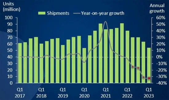 Сейчас же продажи компьютеров рухнули где-то на треть, вернувшись в первом квартале этого года к показателям первого квартала 2020 года — возвращаемся к тому, с чего три года назад начали. Только на повторение скачка никто уже не надеется, поскольку пандемия кончилась (точнее, кончились связанные с ней ограничения), зато появились новые факторы, типа всплеска инфляции и т. п., что заставляет, напротив, откладывать закупку техники. Выльется ли это в отложенный спрос и соответствующий скачок во второй половине года или позднее? Покажет время. Пока же ситуация простая: что первый квартал 2020 года, что первый квартал 2023 года с точки зрения компьютерного рынка худшие за последние шесть лет. И началось это не вчера, а еще с середины прошлого года. На деле и четвертый квартал 2022 года оказался худшим за шесть лет, но не в глобальном плане, а среди других четвертых кварталов (в плане продаж это самые «жирные» месяцы, благодаря Рождеству и не только), практически не отличаясь от третьего квартала по объемам. Именно тогда аналитики начали стыдливо загребать под коврик старые прогнозы и готовить новые.