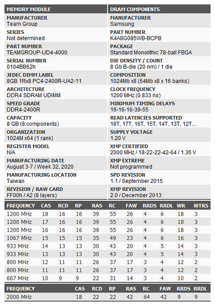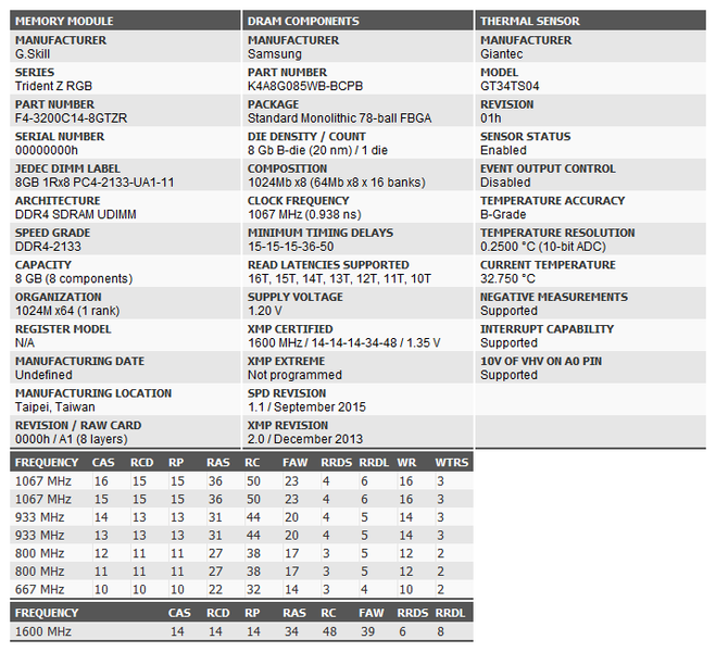 Как видим, на первый взгляд это ровно тот же Samsung B-die, причем младшие профили у наших комплектов практически совпадают. А вот разгоняются они по-разному, так что T-Force Xtreem «не выдерживает» тайминги 14-14-14 на 3200 МГц, с которыми прекрасно работает G.Skill Trident Z RGB, но зато прекрасно переключается на 4000 МГц одной кнопкой, пусть и с таймингами 18-22-22. Наш комплект G.Skill так не может.