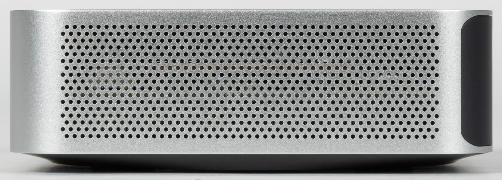 Более серьезная претензия — оба порта подходят для передачи данных со скоростью до 40 Гбит/с или вывода видеосигнала, так что к компьютеру можно одновременно подключить и четыре устройства отображения с разрешением 4К и частотой обновления 60 Гц (либо 8К с такой частотой — но только одно), однако ни один из портов Thunderbolt не рассчитан на питание самого Mega Mini M1. Пока это, к сожалению, куда более частая практика, чем обратное — но не упомянуть об этом нельзя. Вдруг кто-то надеялся заменить штатный блок питания на что-то более компактное с поддержкой USB Power Delivery, либо просто подключать мини-ПК к монитору одним кабелем «для всего» — не получится.