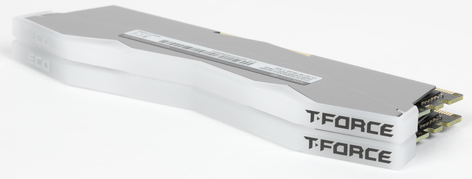 Так что посмотрим — насколько под определение разумный компромисс подходит новый продукт от TeamGroup. Формулировка способна удовлетворить самого взыскательного «зеленого»: Первая в отрасли экологически чистая память DDR5 с RGB-подсветкой для разгона. Но, если немного подумать, это предложение с особым цинизмом. Очевидно, что ни разгон, ни, тем более, подсветка в экологичную картину мира никак не вписываются. Тут бы в самый раз подошли низкочастотные модели вообще без радиаторов, а не только без светодиодов — самые экономичные и требующие минимума материалов при производстве. Но разумным компромиссом считать можно и предложенное, а «регулярные» модели — не меньшая крайность, чем экстремальные комплекты. Как бы то ни было, но высокочастотные модули с подсветкой части покупателей интересны, так что и им нужно что-то предлагать, не заставляя впадать в крайности. Тем более, в этой серии за экстримом компания не гоняется: пока доступны комплекты DDR5-6000 на 64 ГБ и вдвое меньшие под частоты 5600, 6000 и 6400 МГц. «Приличная» память со многими такими режимами справляется даже без увеличения напряжения, так что высокой прожорливостью не отличается.
