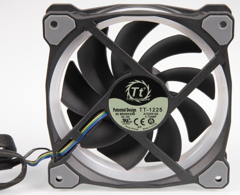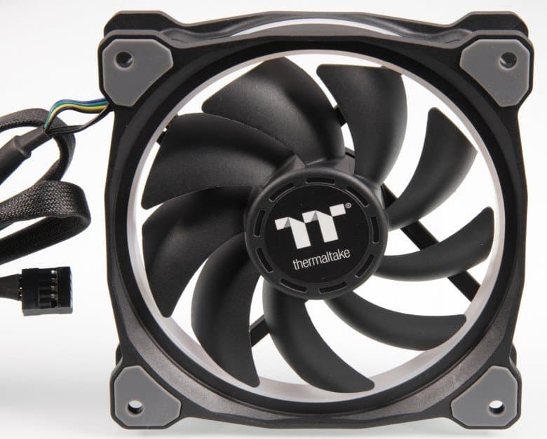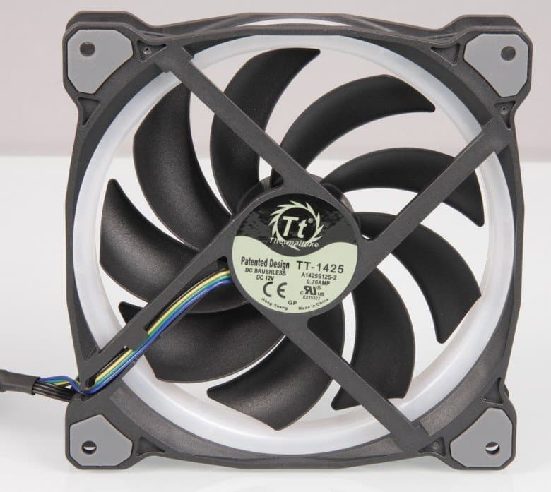 Вентиляторы напоминают те, что встретились нам в комплекте Riing 12 RGB Radiator Fan TT Premium Edition, но все же они различаются.