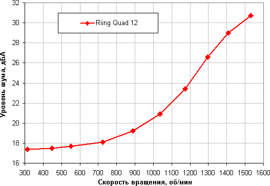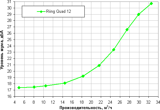Отметим, что ниже примерно 18 дБА фоновый шум помещения и шумы измерительного тракта шумомера уже гораздо выше шума от вентилятора. Данный вентилятор можно считать относительно тихим устройством.