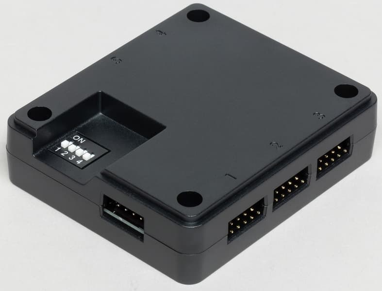 Контроллер к источнику питания подключается кабелем с периферийным разъемом («типа Molex»). Соединять эти разъемы в варианте, когда обе части на кабеле, не всегда просто, поэтому если на кабеле от блока питания есть свободный разъем питания для 3,5″ дисковода, то лучше подключить этот разъем непосредственно к контроллеру. Два кабеля с разъемами Micro-USB выходят из одного разъема к колодке USB 2.0. Этими кабелями соединяется контроллер и системная плата. Так как разъемов Micro-USB два, то к одной колодке подключить можно сразу два контроллера. Вторым способом увеличения числа подключенных контроллеров является использование последовательного соединения контроллеров специальным входящим в комплект кабелем. Для адресации контроллера в системе его номер выставляется с помощью переключателей на нижней стороне контроллера. В системе одновременно может работать до 16 независимо управляемых контроллеров, и к каждому может быть подключено до 5 вентиляторов, водоблоков и т. д., что в итоге дает до 80 независимо управляемых устройств. Устройства подключаются к 9-штырьковым разъемам на контроллере. На одной грани контроллера 3 таких разъема, на второй — 2. Исследование функций контактов показало, четыре в ряд — это земля (общий контакт), питание 12 В, вход датчика вращения вентилятора и выход управления с помощью ШИМ, а четыре контакта во втором ряду используются для управления RGB-подсветкой. Контакты на разъемах вентиляторов данной системы расположены так, что их можно подключать к стандартным четырехконтактным разъемам для вентиляторов на материнской плате, но в таком варианте функции управления подсветкой задействовать, разумеется, не получится.