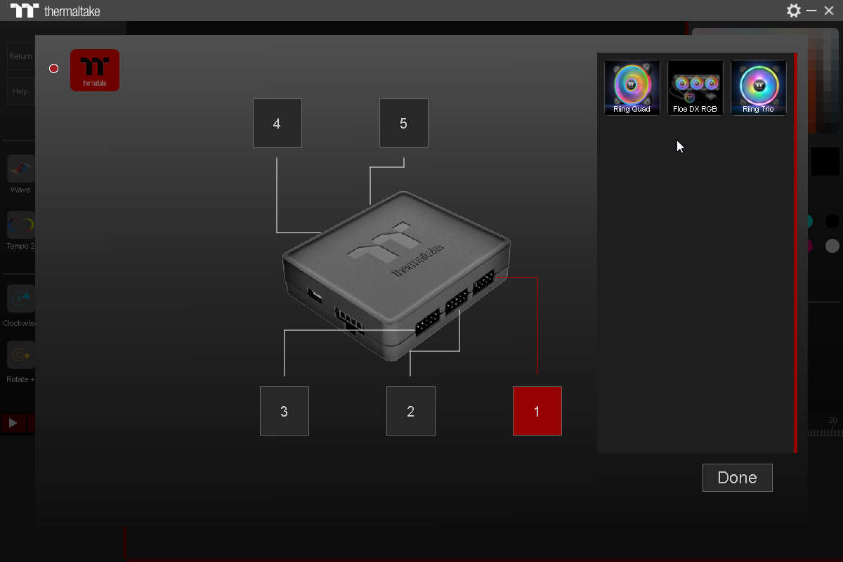 Управление работой вентиляторов и их подсветкой, а также подсветкой водоблоков ряда моделей СЖО и других устройств от Thermaltake осуществляется с помощью контроллера. Он представляет собой черную коробочку из пластмассы размером 75×65×20 мм.