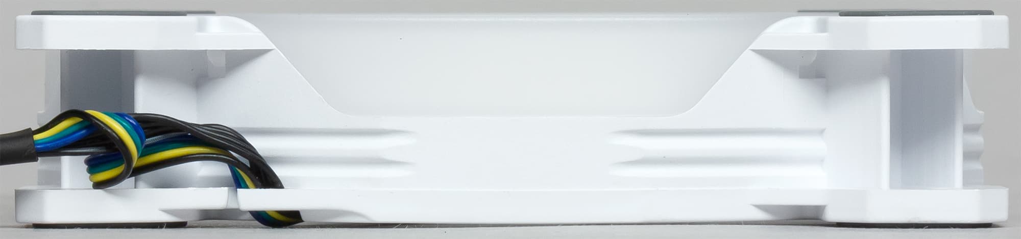 Рамка вентилятора изготовлена из прочного белого пластика. Спереди на рамке закреплен светорассеиватель в виде кольца из белого полупрозрачного пластика. Из такого же материала изготовлена крыльчатка вентилятора. Светорассеиватель на рамке и центральная часть крыльчатки прикрывают расположенные по кругу многоцветные светодиоды, которые образуют четыре зоны подсветки: 18 светодиодов на внешнем кольце рамки, 18 — на внутреннем кольце рамки, 9 — на внешнем кольце крыльчатки и 9 — на внутреннем кольце крыльчатки. Итого всего 54 независимо управляемых адресуемых RGB-светодиодов на одном вентиляторе.