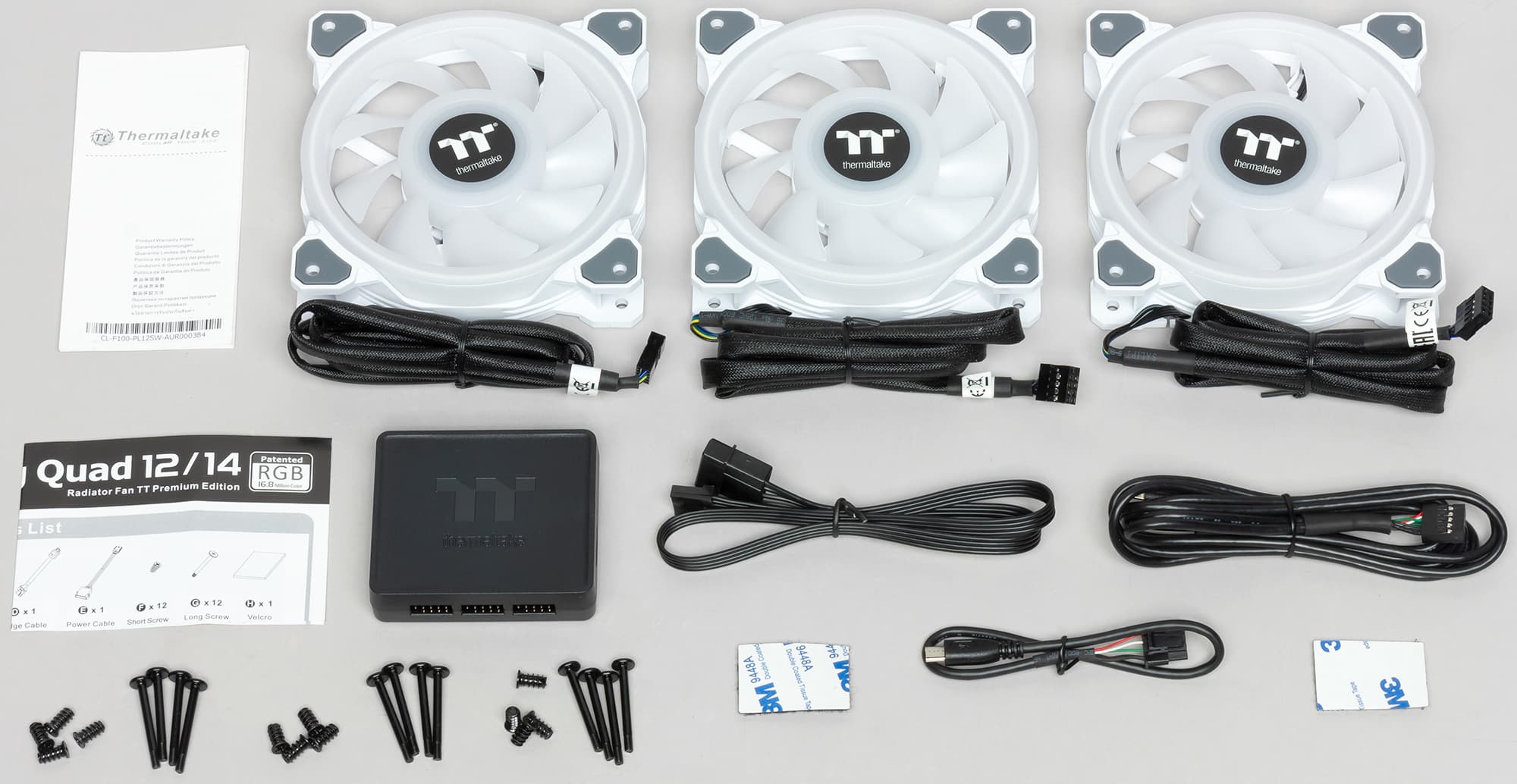 | Название модели и ссылка на сайт производителя | Riing Quad 12 RGB Radiator Fan TT Premium Edition 3 Pack - White |