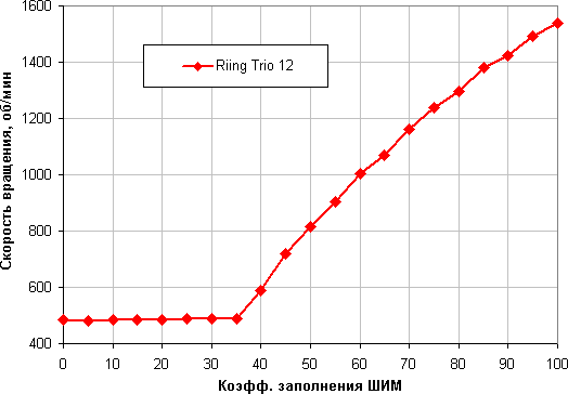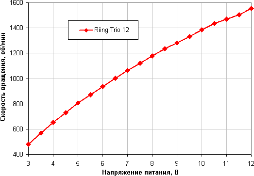 Видно, что по этому параметру вентилятор из набора Riing Trio 12 LED RGB Radiator Fan TT Premium Edition занял среднюю позицию.