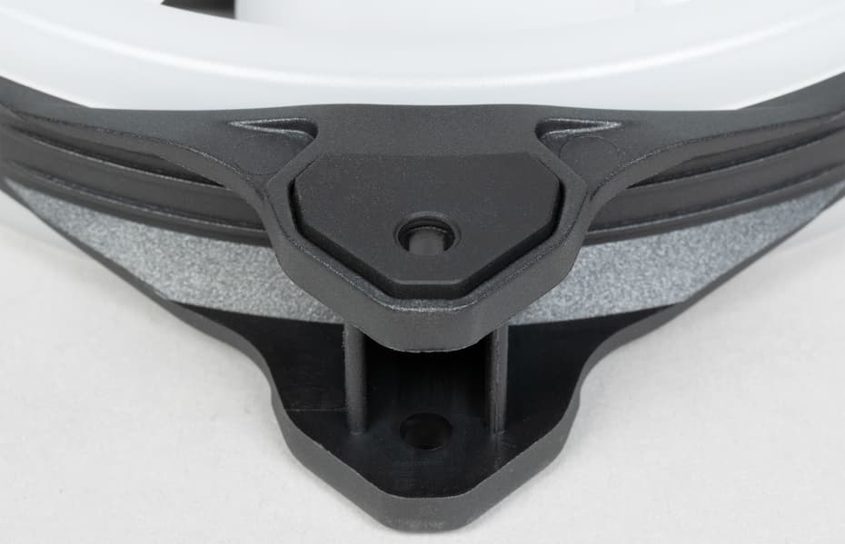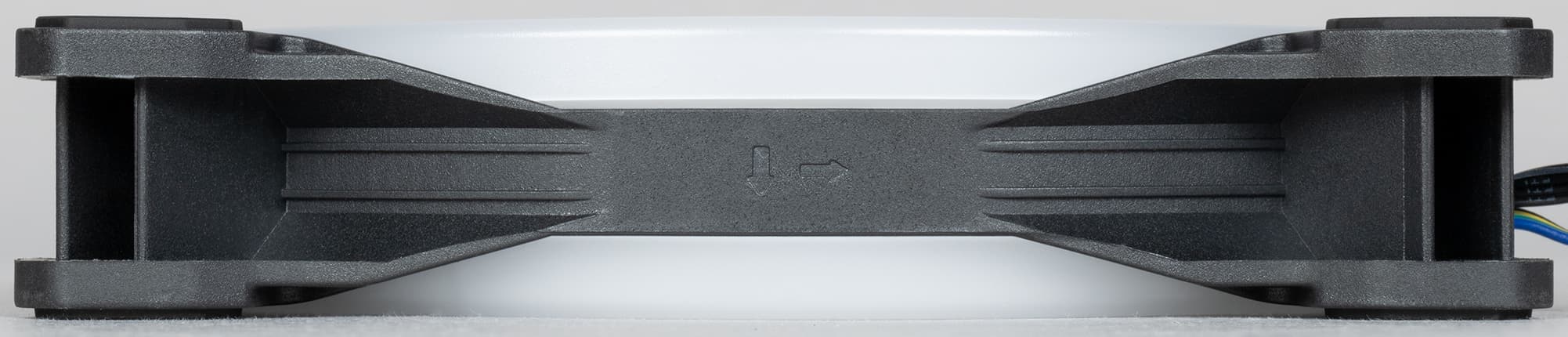 Рамка вентилятора изготовлена из прочного черного пластика. Спереди и сзади на рамке закреплены светорассеиватели в виде колец из белого полупрозрачного пластика. Из такого же материала изготовлена крыльчатка вентилятора. Светорассеиватели на рамке и под центральной частью крыльчатки прикрывают расположенные по кругу многоцветные светодиоды, которые образуют три зоны подсветки: по 12 светодиодов на кольцах рамки и 6 — на внутреннем кольце под крыльчаткой. Итого всего 30 независимо управляемых адресуемых RGB-светодиодов на одном вентиляторе.