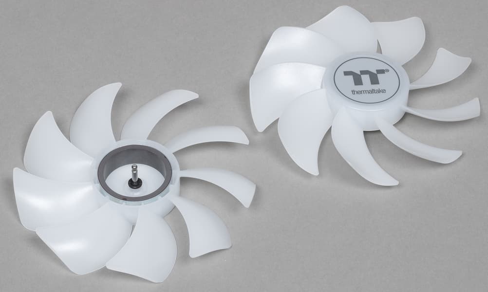 Вентилятор, особенно с подсветкой крыльчатки, смотрится красиво только с фронтальной стороны, в некоторых случаях это слегка портит вид собранного ПК. Компания Thermaltake предложила решение, а именно укомплектовала набор SwaFan 14 RGB Radiator Fan тремя реверсивными крыльчатками, которые можно установить взамен стандартных. Используя одну из этих двух крыльчаток стандартную или реверсивную, пользователь всегда сможет установить вентилятор так, что он будет смотреться самым выгодным образом.