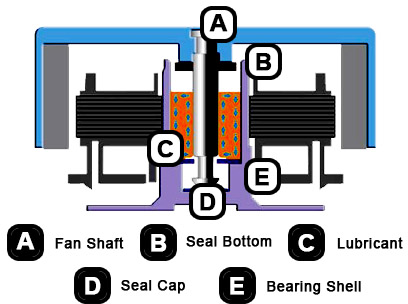 В данном вентиляторе применяется гидравлический подшипник (Hydraulic Bearing). Вот схема конструкции этого подшипника: