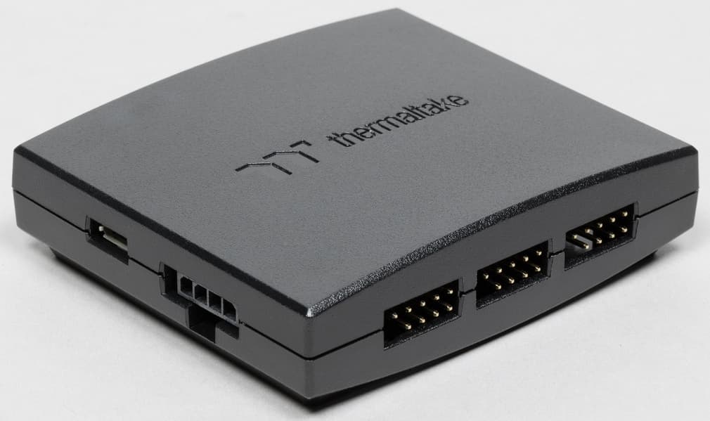 Управление работой вентиляторов и их подсветкой, а также подсветкой водоблоков ряда моделей СЖО и других устройств Thermaltake осуществляется с помощью контроллера. Он представляет собой черную коробочку из пластмассы размером 75×65×20 мм.
