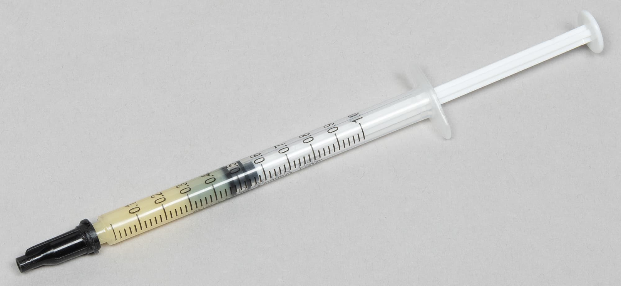 Судя по всему, это подшипник скольжения с циркуляцией смазки. После нескольких замен крыльчаток производитель рекомендует пополнять смазку в подшипнике мотора в количестве примерно 0,1 мл. Как видно, комплектного шприца хватит где-то на 5 добавок смазки.