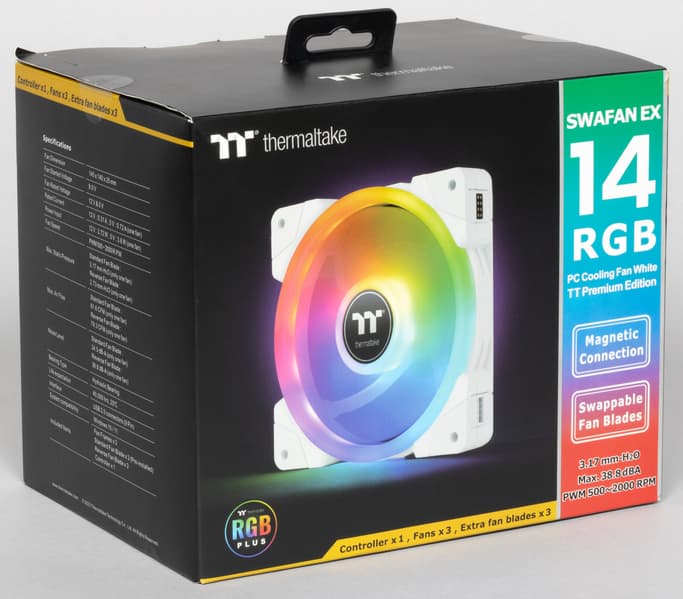 Отметим, что полное название продукта — Thermaltake SwaFan EX14 RGB PC Cooling Fan White TT Premium Edition (3-Fan Pack), но для краткости мы в ряде случаев будем использовать «Thermaltake SwaFan EX14 RGB».