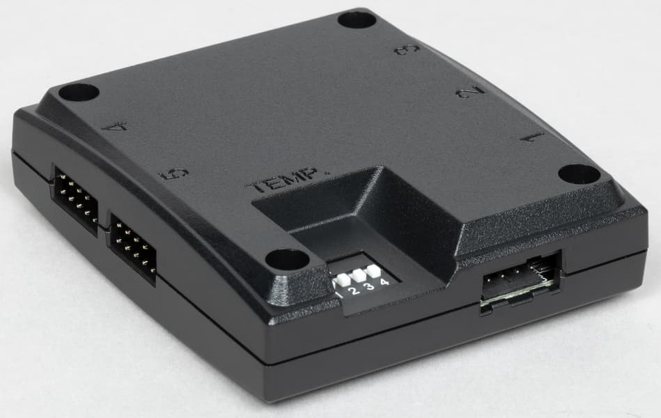 Контроллер к источнику питания подключается кабелем (длиной 50 см) с периферийным разъемом («типа Molex»). Соединять эти разъемы в варианте, когда обе части на кабеле, не всегда просто, поэтому если на кабеле от блока питания есть свободный разъем питания для 3,5″ дисковода, то лучше подключить этот разъем непосредственно к контроллеру. Два кабеля (длиной 86 см) с разъемами Micro-USB выходят из одного разъема к колодке USB 2.0. Этими кабелями соединяется контроллер и системная плата. Так как разъемов Micro-USB два, то к одной колодке подключить можно сразу два контроллера. Вторым способом увеличения числа подключенных контроллеров является использование последовательного соединения контроллеров специальным входящим в комплект кабелем (26 см). Для адресации контроллера в системе его номер выставляется с помощью переключателей на нижней стороне контроллера. В системе одновременно может работать до 16 независимо управляемых контроллеров, и к каждому может быть подключено до 5 вентиляторов, водоблоков и т. д., что в итоге дает до 80 независимо управляемых устройств. Устройства подключаются к 9-штырьковым разъемам на контроллере. На одной грани контроллера 3 таких разъема, на второй — 2. Исследование функций контактов показало, четыре в ряд — это земля (общий контакт), питание 12 В, вход датчика вращения вентилятора и выход управления с помощью ШИМ, а три контакта во втором ряду используются для управления RGB-подсветкой.