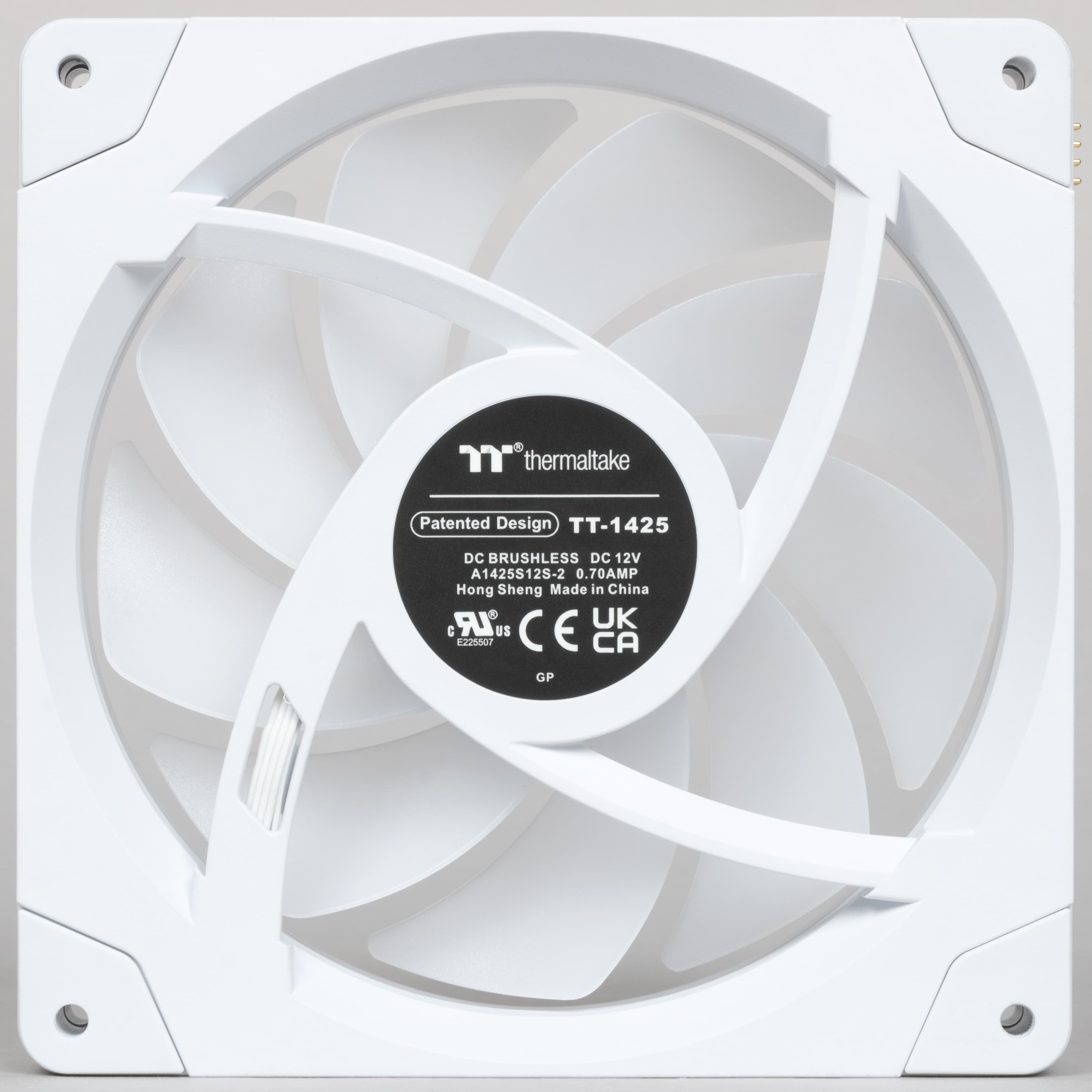 Вентиляторы из набора Thermaltake SwaFan EX14 RGB PC Cooling Fan White TT Premium Edition (3-Fan Pack) являются составной частью экосистемы TT RGB Plus, объединяющей продукты с адресуемой светодиодной подсветкой и ПО TT RGB Plus. Рассмотренный в статье комплект состоит из трех вентиляторов 140 мм, а также одного управляющего контроллера. Особенностью вентиляторов являются две кольцевые зоны подсветки с 20 независимо управляемыми RGB-светодиодами и магнитные разъемы, при этом дополнительные сменные реверсивные крыльчатки позволят сохранить красочный вид вентиляторов при любом способе установки. Параметры вентиляторов в целом хорошие, поэтому их можно рекомендовать к использованию в высокопроизводительных системах.