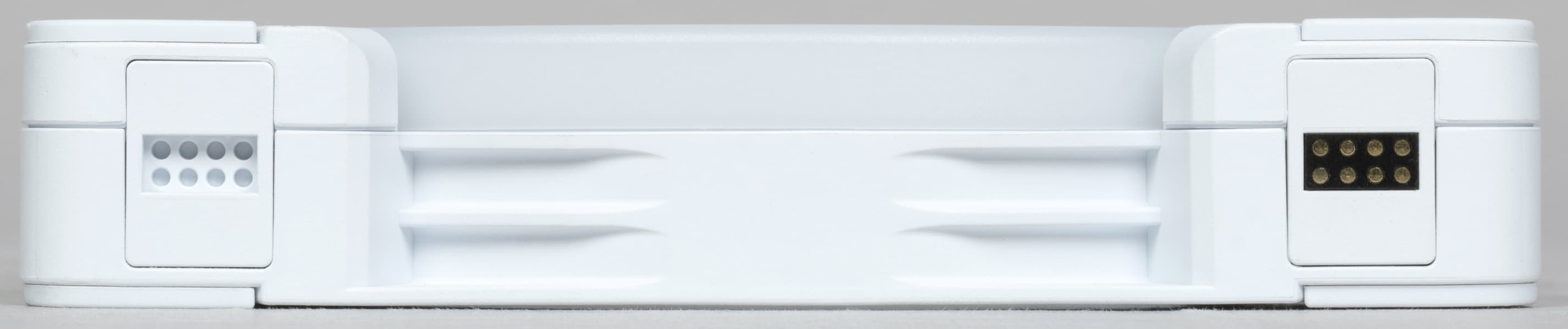 Рамка вентилятора изготовлена из прочного черного пластика. Спереди на рамке закреплен светорассеиватель в виде кольца из белого полупрозрачного пластика. Из такого же материала изготовлена крыльчатка вентилятора. Светорассеиватели на рамке и под центральной частью крыльчатки прикрывают расположенные по кругу многоцветные светодиоды, которые образуют две зоны подсветки: 14 светодиодов на кольце рамки и 6 на внутреннем кольце под крыльчаткой — всего 20 независимо управляемых адресуемых RGB-светодиодов на одном вентиляторе.