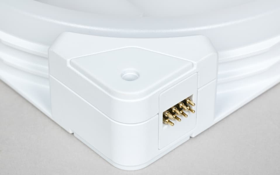 Электрические соединения системы не совсем обычные. Каждый из вентиляторов оснащен двумя разъемами с магнитной и довольно сильной фиксацией, притом один типа «мама», а второй типа «папа». Соединяться друг с другом могут, разумеется, только разнополые разъемы.