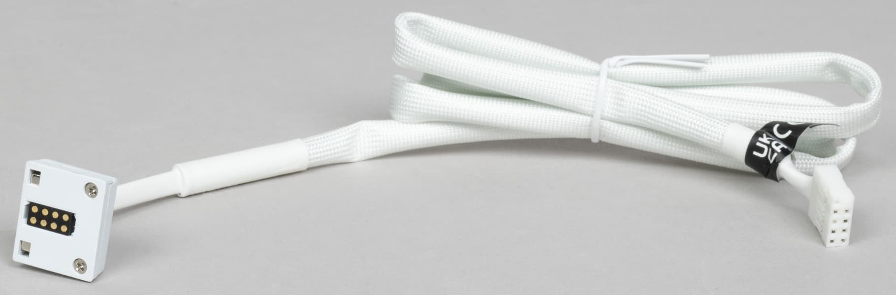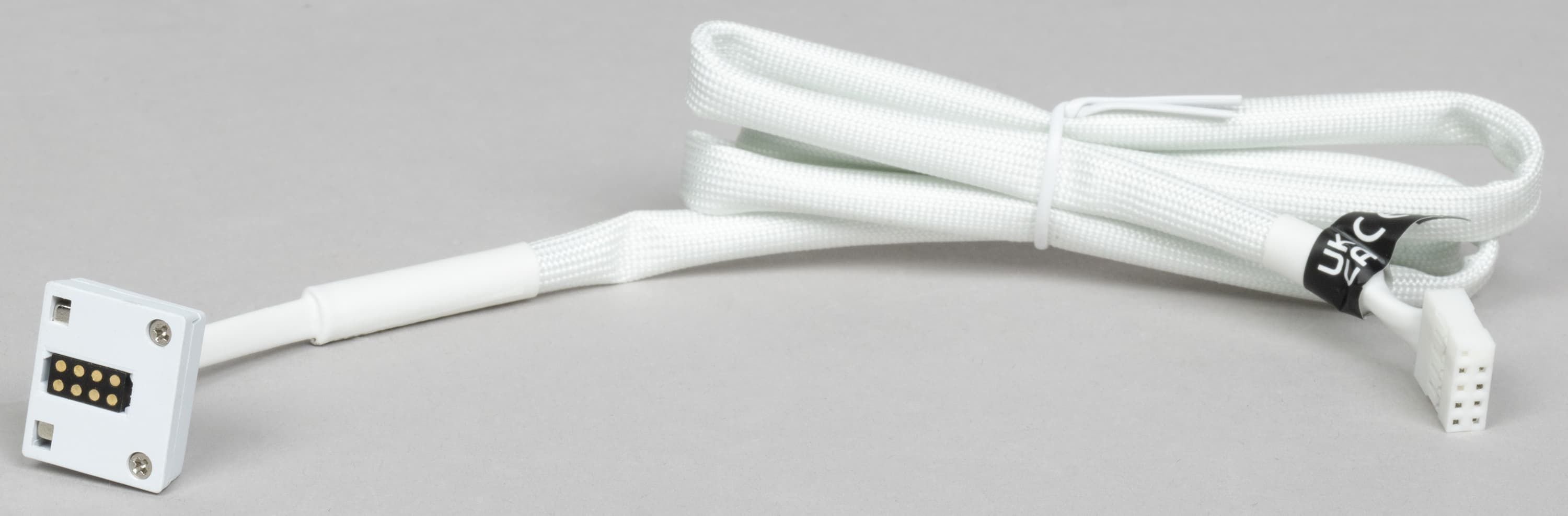 Для подключения состыкованных вентиляторов или вентиляторов по отдельности к источникам питания моторов и подсветки используется кабель (длиной 89 см) с магнитным разъемом типа «мама».