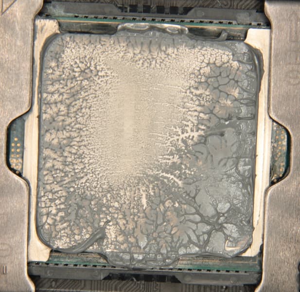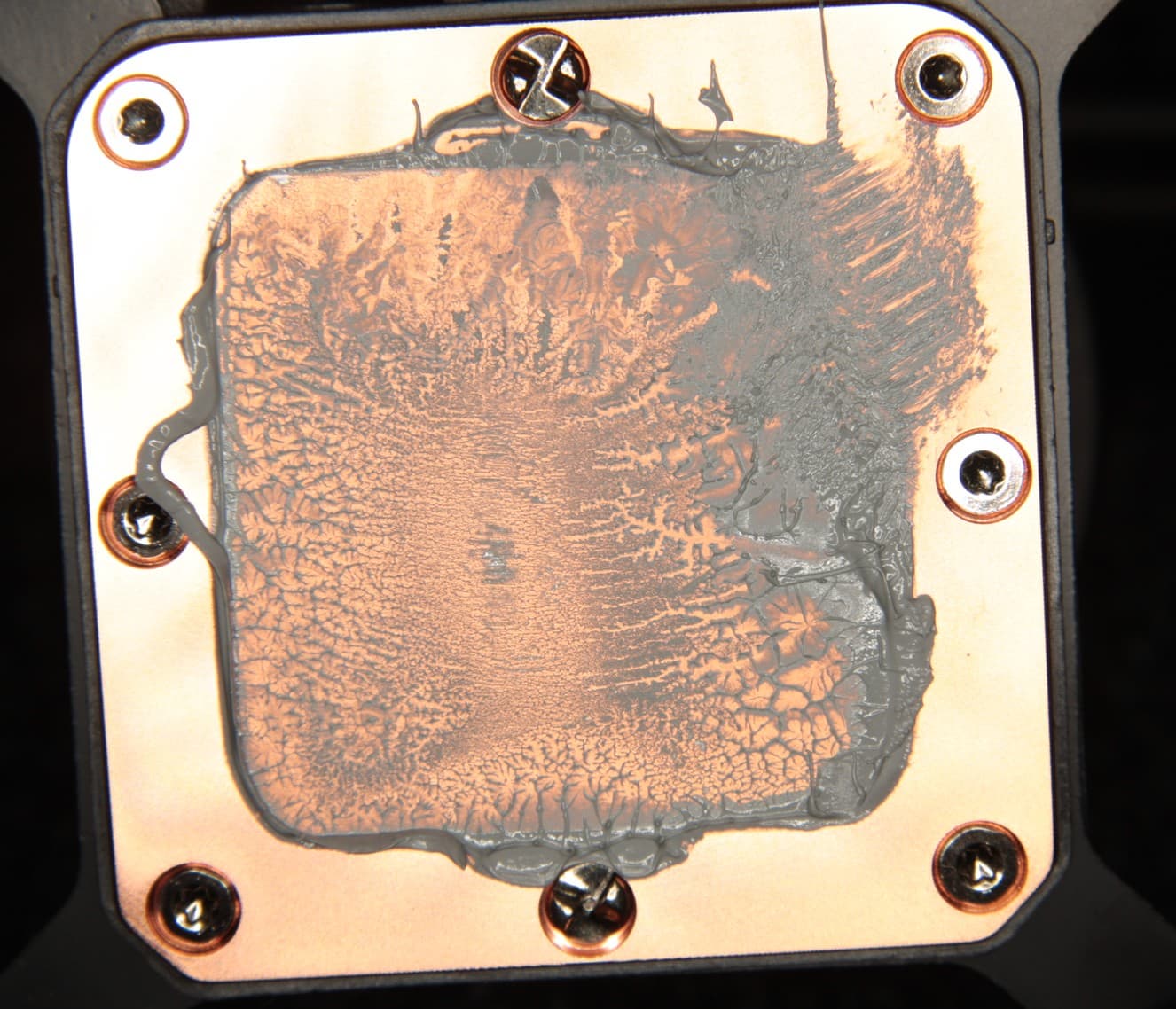 Забегая вперед, продемонстрируем распределение термопасты после завершения всех тестов. На процессоре Intel Core i9-7980XE: