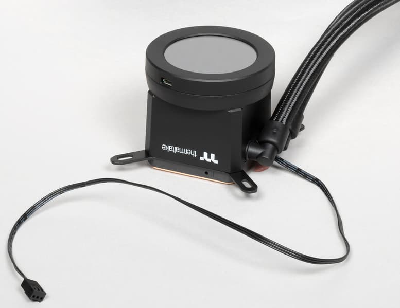 На основе системы жидкостного охлаждения Thermaltake ToughLiquid Ultra 240 можно создать условно бесшумный компьютер (уровень шума 25 дБА и ниже), оснащенный процессором типа Intel Core i9-7980XE (Intel LGA2066, Skylake-X (HCC)), если потребление процессора под максимальной нагрузкой не будет превышать 245 Вт, а температура внутри корпуса не повысится выше 44 °C. При снижении температуры охлаждающего воздуха и/или менее жестких требованиях к уровню шума пределы мощности можно увеличить. Главная особенность данной системы — это ЖК-экран на помпе, на который можно вывести полезную диагностическую информацию, анимированный GIF или просто красивую картинку.