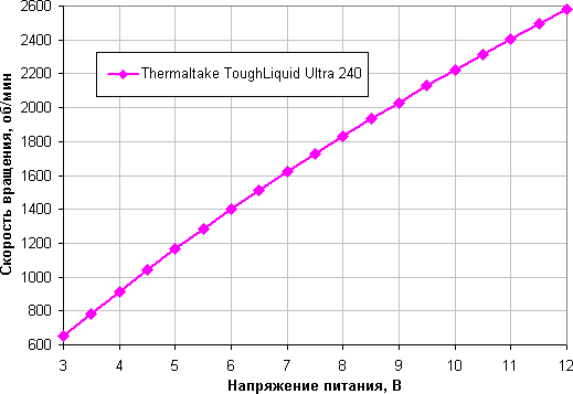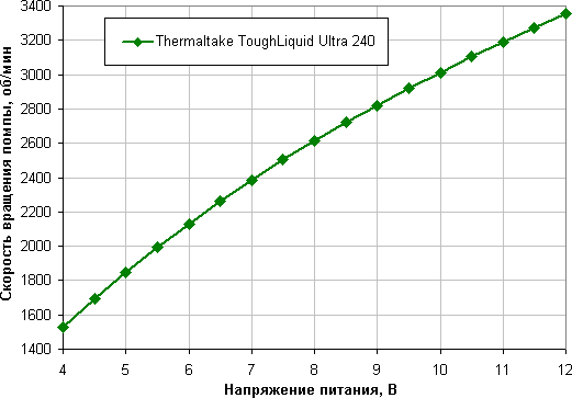 Приведем также зависимость скорости вращения помпы от напряжения питания: