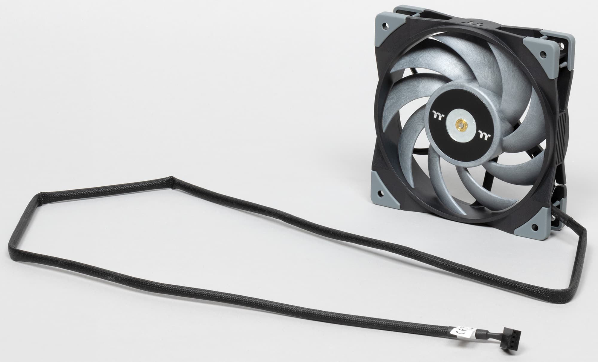 Кабели от вентиляторов заключены в плетеную оболочку. Согласно легенде оболочка уменьшает аэродинамическое сопротивление, но принимая во внимание толщину плоских трех- или четырехпроводных кабелей внутри этой оболочки и ее внешний диаметр, мы в правдивости этой легенды сильно сомневается. Оболочка пропитана каким-то составом, напоминающим каучук, поэтому она относительно жесткая и упругая, и за все цепляется, протаскивать кабель в такой оболочке внутри корпуса занятие не из легких. Впрочем, оболочка позволит сохранить единый стиль оформления внутреннего убранства системного блока. Плетеная оболочка на разветвителе скользкая, что уже лучше, а на кабеле питания помпы оболочки нет вовсе, что совсем хорошо. Вентиляторы поддерживают управление с помощью ШИМ. Длина кабеля питания вентилятора 89 см. Кабели длинные, что расширяет возможности по установке без использования удлинителей. Длина двух веток разветвителя — 20 см каждой.