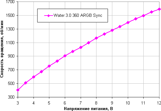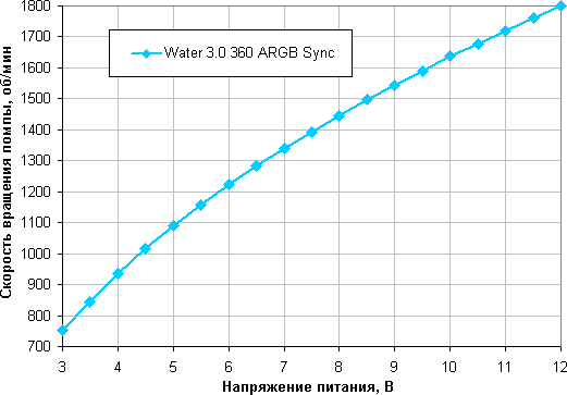 Приведем также зависимость скорости вращения помпы от напряжения питания: