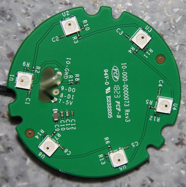 Верхняя часть крышки подсвечивается изнутри многоцветной подсветкой, состоящей из шести независимых зон (используются RGB-светодиоды с адресацией, расположенные по кругу).