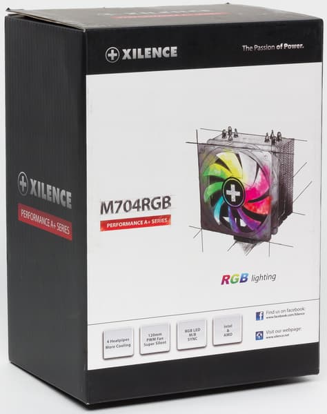 Поставляется процессорный охладитель Xilence M704RGB в красочно оформленной коробке из тонкого гофрированного картона.