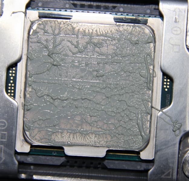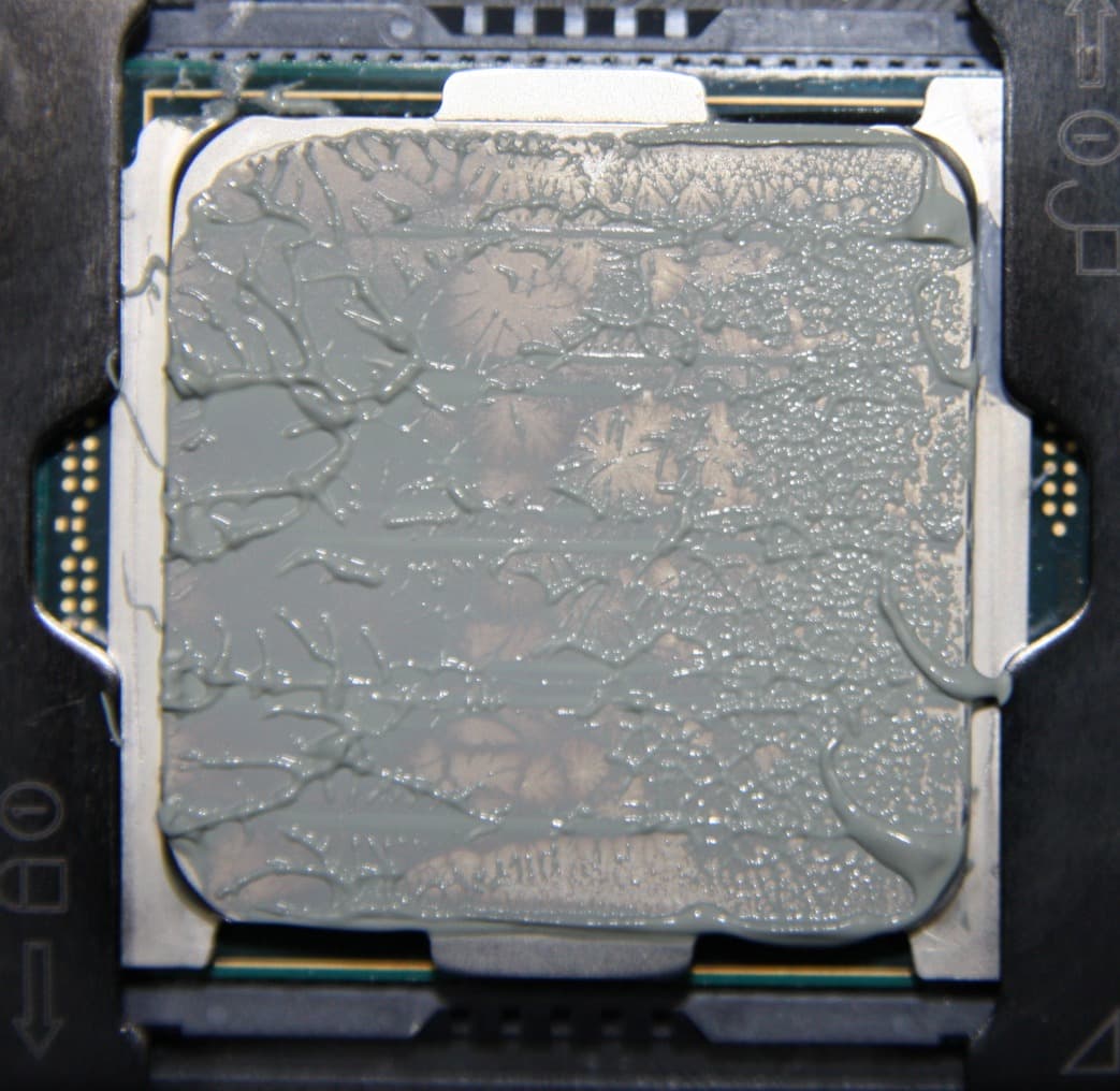 Также была проведена серия дополнительных тестов с процессором Intel Core i9-7980XE. Распределение термопасты на процессоре i9-7980XE: