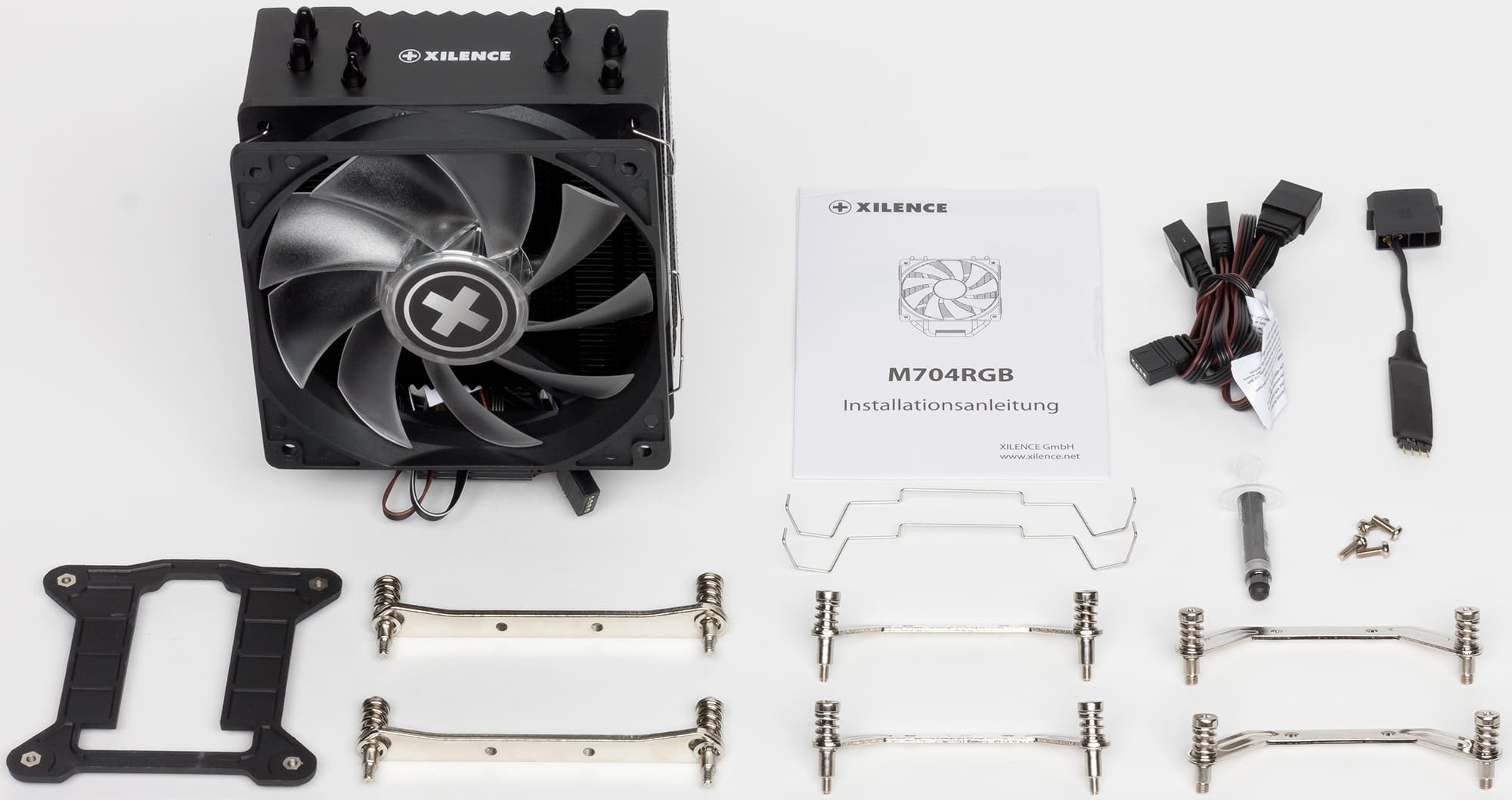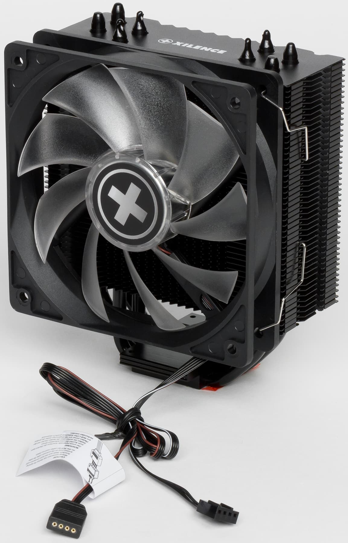С использованием кулера Xilence M704RGB можно создать условно бесшумный компьютер, оснащенный процессором типа Intel Core i7-6900K (LGA 2011, Broadwell-E) с тепловыделением порядка 120 Вт максимум. При этом даже с учетом возможного повышения температуры внутри корпуса до 44 °C и при условии долговременной максимальной нагрузки все равно будет сохраняться очень низкий уровень шума — 25 дБА и ниже. При снижении температуры воздуха и/или менее жестких требованиях к уровню шума предел мощности можно увеличить. В случае процессора типа Intel Core i9-7980XE (Intel LGA2066, Skylake-X (HCC)) мы получили предел в 170 Вт для условно бесшумного ПК. К достоинствам кулера следует отнести строгий дизайн, хорошее качество изготовления, удобный крепеж кулера на процессор, габариты, не препятствующие установке модулей памяти с высокими радиаторами, хорошую комплектацию и, конечно, многоцветную статичную или динамичную подсветку крыльчатки вентилятора.