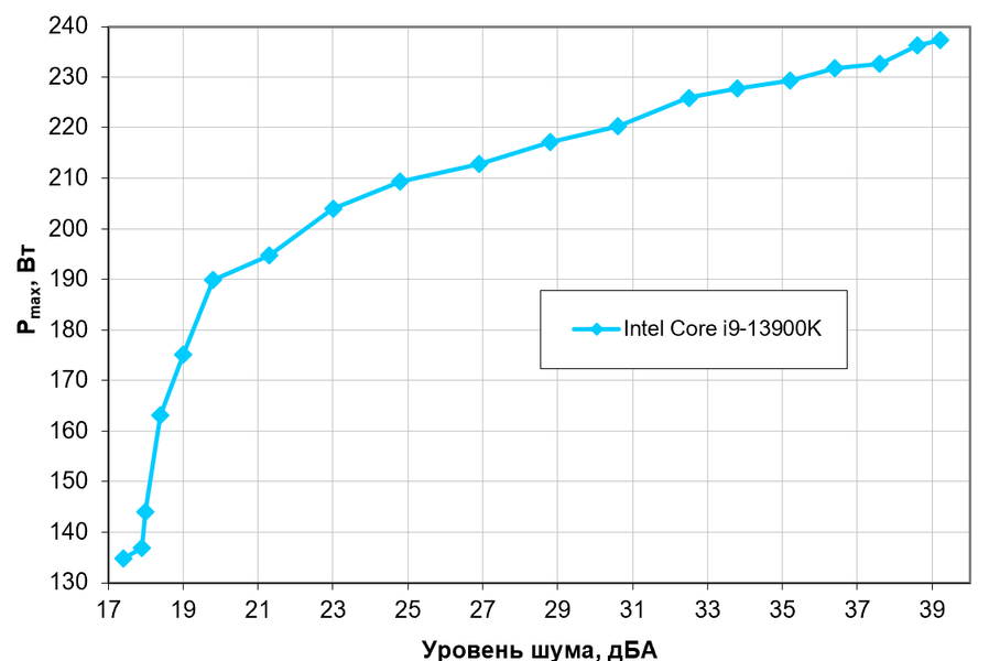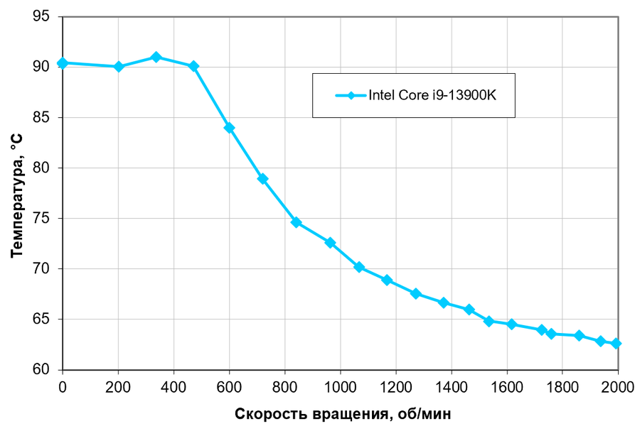 Полное описание методики тестирования приведено в соответствующей статье «Методика тестирования процессорных охладителей образца 2020 года». В данном тесте все ядра процессора Intel Core i9-13900K работали на частоте 4,1 ГГц.