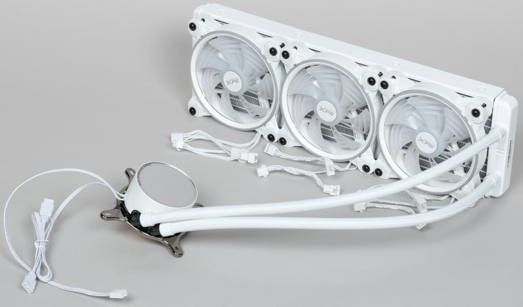 А у систем жидкостного охлаждения разнообразия и изначально было поменьше, поскольку из конструкций обычно то там, то там торчат «уши» оригинального дизайна Asetek. Кроме того, и спектр решаемых проблем чуть уже (в первую очередь такие нагрузки, с которыми «воздух» уже просто не справляется), так что и по группам особого деления ввести не получается. Но это позволяет заниматься СЖО и немного неожиданным производителям. Зачем, когда специализирующиеся-то только на охлаждении уже не знают, чего же нового покупателю предложить, хотя новинки приходится выпускать регулярно (суровая логика современного капитализма)? Для расширения ассортимента, хотя бы. К примеру, под маркой XPG (фактически дочка всем известной Adata) изначально продавалась в основном «геймерская» память, потом широким потоком пошли «геймерские» SSD — почему бы не появиться и «геймерским» кулерам? Тем более, что логики в них больше, чем в тех же SSD уж точно.