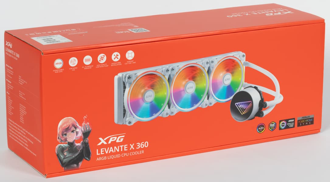 Поставляется система жидкостного охлаждения XPG Levante X 360 в коробке революционно красного цвета из среднего по толщине гофрированного картона.