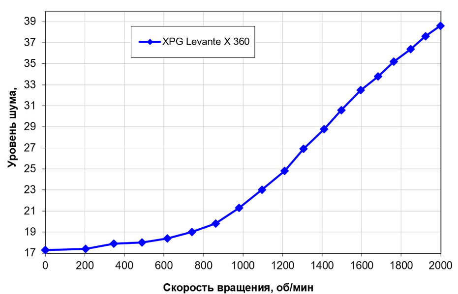 Уровень шума меняется в очень широком диапазоне. Зависит, конечно, от индивидуальных особенностей и других факторов, но где-то от 40 дБА и выше шум, с нашей точки зрения, очень высокий для настольной системы; от 35 до 40 дБА уровень шума относится к разряду терпимых; ниже 35 дБА шум от системы охлаждения не будет сильно выделяться на фоне типичных небесшумных компонентов ПК — корпусных вентиляторов, вентиляторов на блоке питания и на видеокарте, а также жестких дисков (при их наличии); а где-то ниже 25 дБА кулер можно назвать условно бесшумным. Фоновый уровень был равен 16,8 дБА (условное значение, которое показывает шумомер).