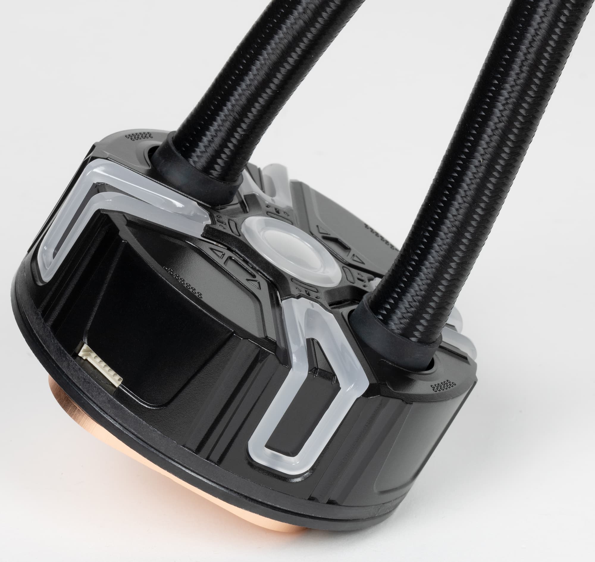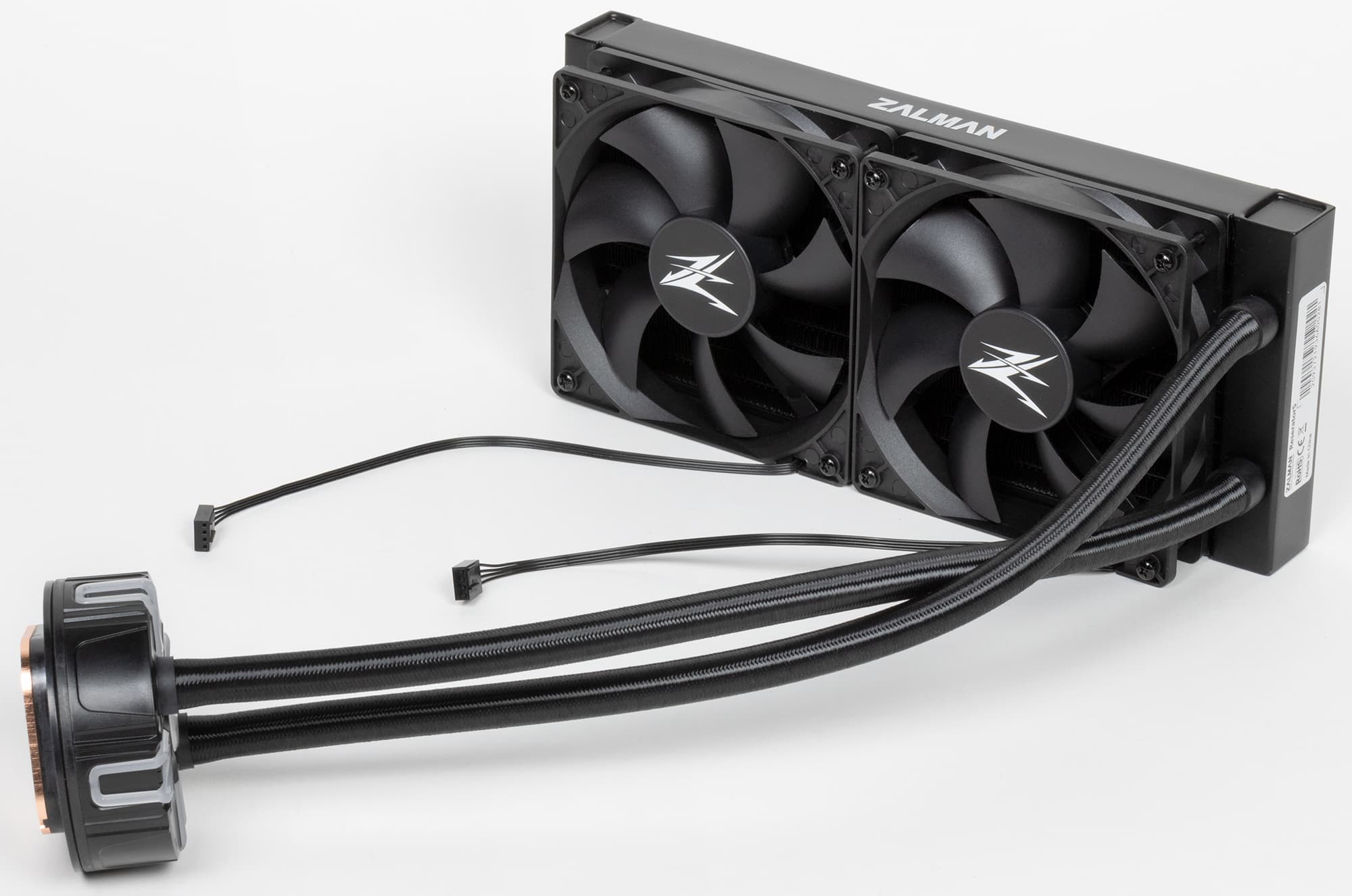 На основе системы жидкостного охлаждения Zalman Reserator5 Z24 можно создать условно бесшумный компьютер, оснащенный процессором типа Intel Core i9-7980XE (Intel LGA2066, Skylake-X (HCC)) с тепловыделением порядка 220 Вт максимум, и это даже с учетом возможного повышения температуры внутри корпуса до 44 °C и при условии долговременной максимальной нагрузки. В случае чиплетного процессора AMD Ryzen 9 3950X эффективность кулера заметно ниже, и для соблюдения указанных выше условий максимальная мощность, потребляемая процессором, должна быть не выше 118 Вт. При снижении температуры охлаждающего воздуха и/или менее жестких требованиях к уровню шума пределы мощности можно увеличить. Любители моддинга оценят адресуемую многозонную RGB-подсветку помпы, которая поможет украсить внутреннее пространство системного блока. Отметим управление помпой с помощью ШИМ, что встречается не так часто, как хотелось бы. На выбор доступны классический черный вариант, а также белый, с белыми радиатором, водоблоком и вентиляторами.