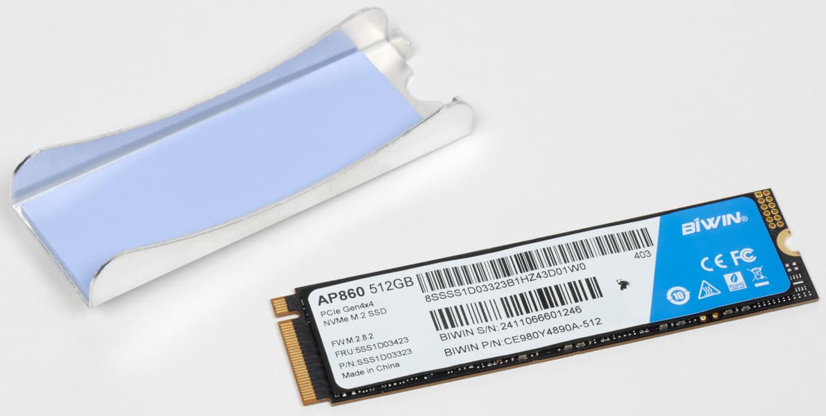 Модулей памяти CXMT CXMQ3A8MA1GU6-CJ1-A в нашей системе установлено два, они работают в двухканальном режиме DDR4-3200 — судя по всему, скорость передачи данных из памяти по умолчанию зафиксирована в UEFI на уровне 3200 МТ/с, так что выше этого значения не прыгнешь. Также установлен твердотельный NVMe-накопитель BIWIN AP860 512 ГБ, и еще один NVMe-накопитель можно установить в дополнительный разъем M.2 при необходимости. Также системная плата предлагает три порта SATA 3.0, все из которых свободны.
