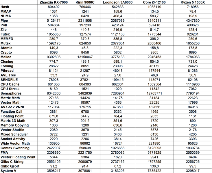 | Zhaoxin KX-7000 | 10029 | 525,4 | 128,7 |