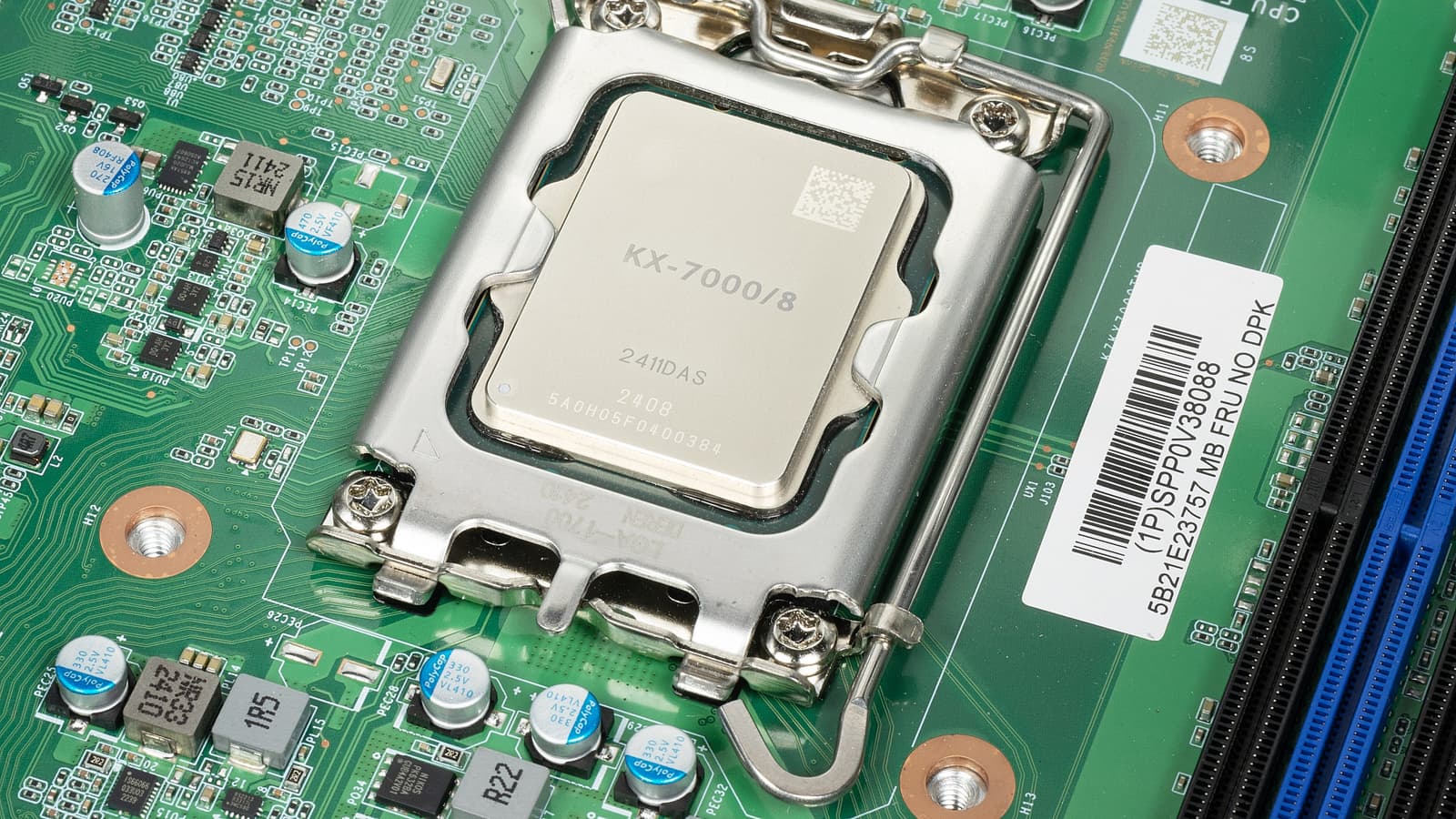 Еще одно важное отличие KX-7000 от предшественников заключается в его физическом воплощении — ранее продукты компании были в корпусах BGA и припаивались на системную плату, и на рынке существовали в формате готового ПК или системной платы с впаянным CPU, а процессоры серии KX-7000 используют разъем LGA 1700 и их можно вставлять и вынимать из системной платы, что привычно по решениям AMD и Intel. В Zhaoxin используют разъем LGA 4677 для своих серверных чипов серии KH-40000, а LGA 1700 — для процессоров для настольных ПК.