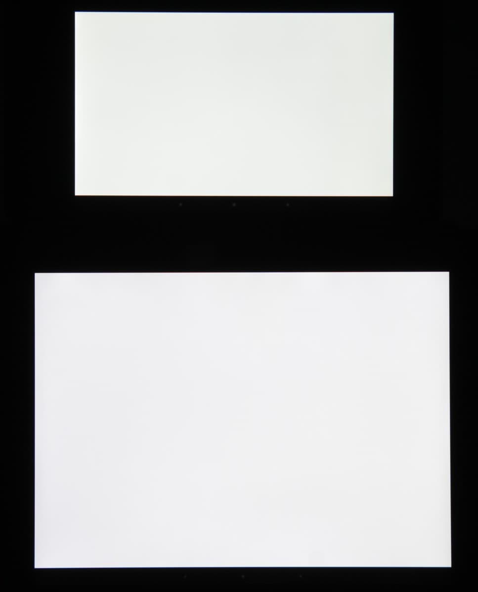 Видно, что цветопередача немного различается, но это единственный обоснованный вывод, который можно сделать по фотографии. И белое поле: