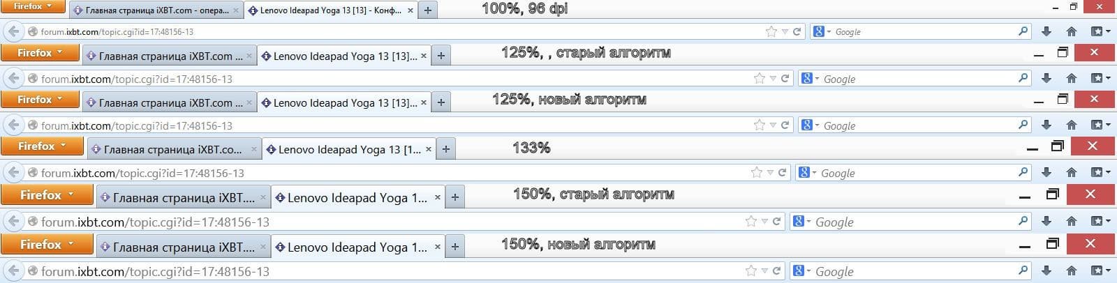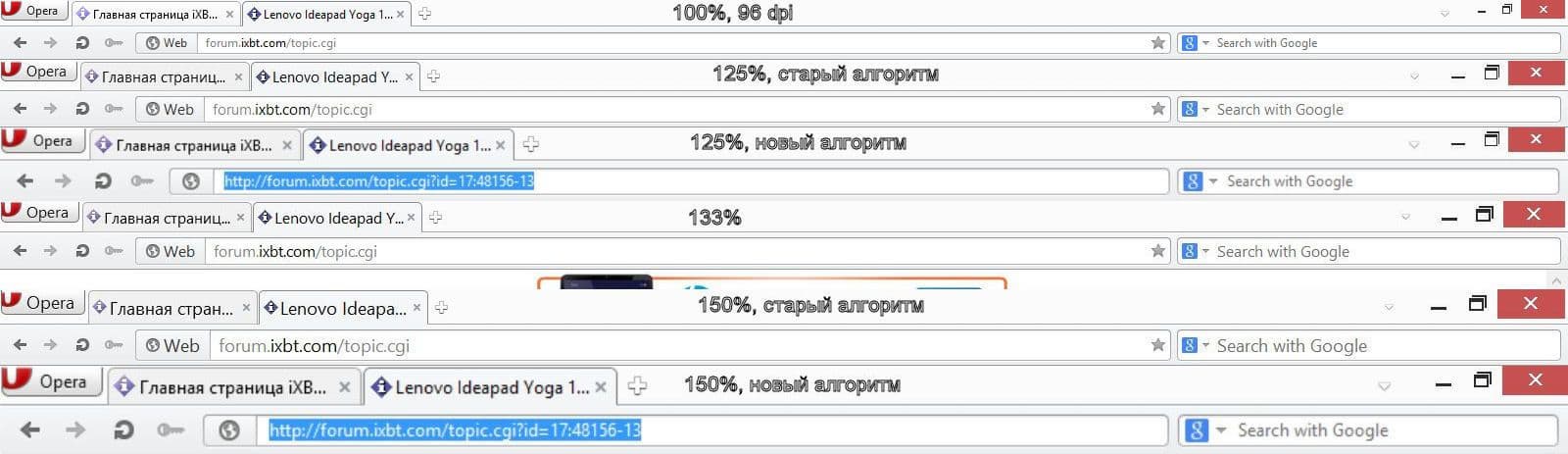 Здесь надо учитывать, что это скриншоты, и мы делали их на мониторе с небольшим PPI. На том же Acer Aspire S7 ситуация будет совершенно другой: текст при DPI = 96 (и масштабе 100%) просто нечитаем, а при DPI = 120, чтобы что-то прочитать, приходится вглядываться и наклонять голову к экрану. Для интересующихся — вот gif-анимация полного экрана со всеми ступенями масштабирования. На других браузерах, не поддерживающих масштабирование, картина будет такой же.