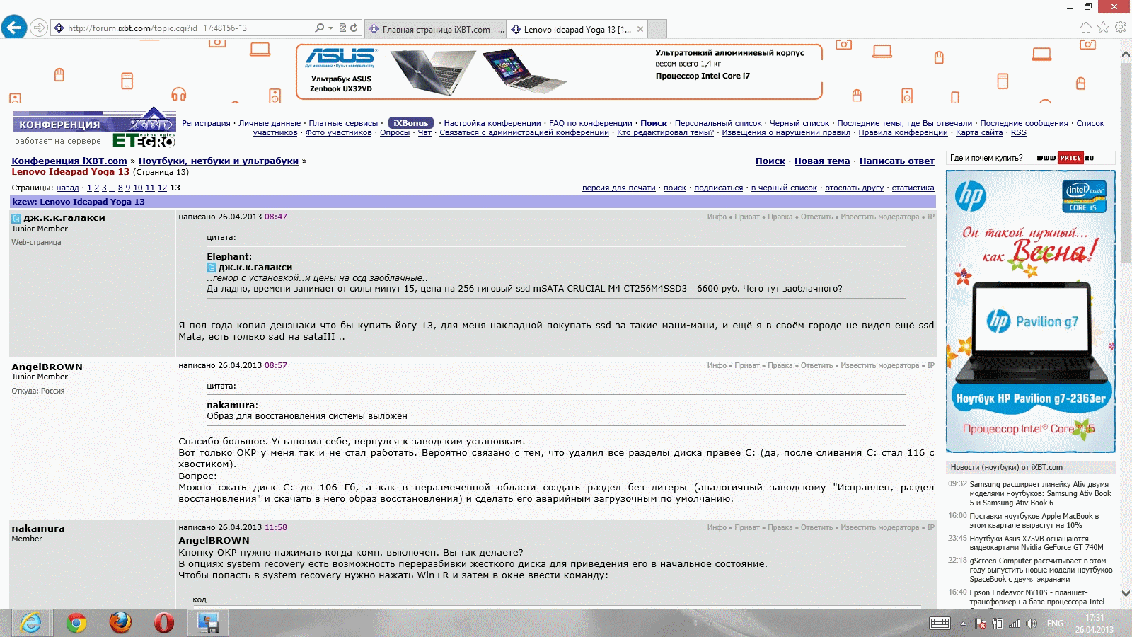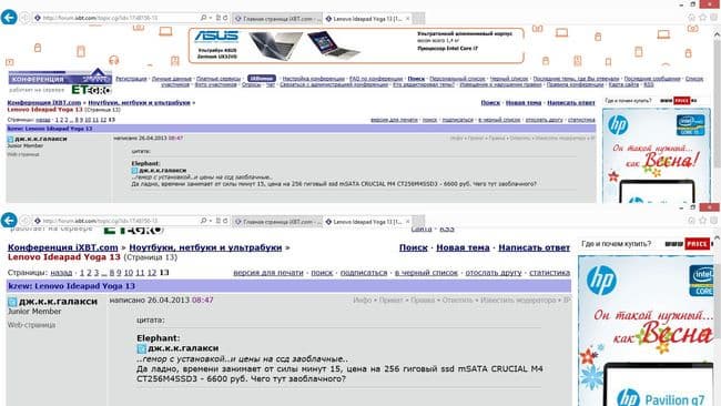 Правда, и я должен оговориться, что с весны браузер стал шалить (IE10 стоит на всех тестовых ноутбуках, поэтому я пользуюсь им постоянно и на разных системах): частые зависания страниц, нередко браузер подвисает целиком, если открыто в районе 10 вкладок и больше. Но зимой, когда я пользовался им на Acer Aspire S7 (а там им единственным было удобно пользоваться), всё работало очень неплохо.