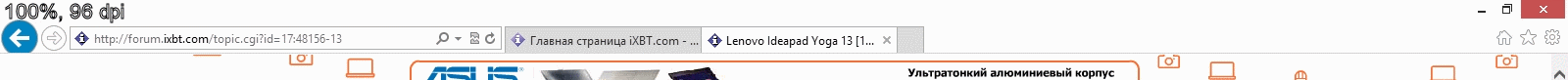 Для каждой из вышеуказанных настроек снималось два скриншота: при масштабе интернет-страницы 100% и масштабе 150%. Тестовая система осталась та же: Lenovo Yoga 13 с экраном 13,3 дюйма и разрешением 1600×900 точек.