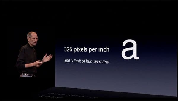 Для начала давайте определимся, что такое Retina и зачем эта технология нужна (если хотите, можете почитать англоязычную википедию). Впервые на рынке она появилась в 2010 году, с выходом iPhone 4. В принципе, можно дать слово самому Стиву Джобсу (видео презентации на Youtube), ибо кто сможет рассказать об этой технологии лучше?