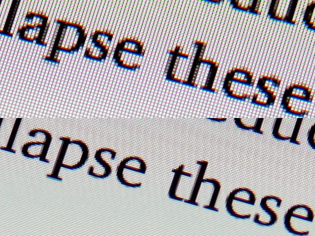- Большая четкость линий. Кривые на экране — это не только графики и графическая информация вообще. Это еще и отрисовка букв: ведь шрифты состоят не только из прямых линий. При большой плотности пикселей глазу гораздо легче различить буквы, он меньше напрягается. Соответственно, можно либо делать шрифты меньше (т. е. на экране поместится больше информации), либо просто расслабить глаза при чтении (больший комфорт при чтении). Это особенно заметно на маленьких экранах, где очень большой дефицит места. Читать текст с экранов современных смартфонов с большой плотностью пикселей гораздо комфортнее.