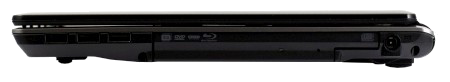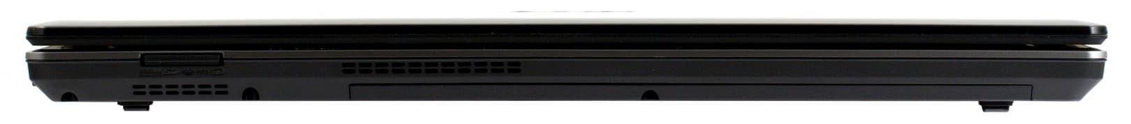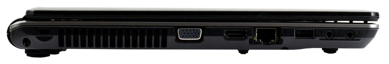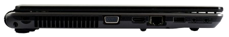 Классический набор портов, который на первый взгляд может показаться даже слишком скромным для универсальной модели. Но место на боковинах лимитировано: с одной стороны оптическим приводом, а на левой боковине располагается вентиляционная решетка, что само по себе оптимальное решение. А располагать интерфейсы на передней и задней панелях по современным меркам допускают лишь полноразмерные ноутбуки класса замены настольных ПК с корпусами толще 3 см, в остальных случаях заднюю панель, как правило, оккупирует аккумулятор, а на передней располагается картовод.