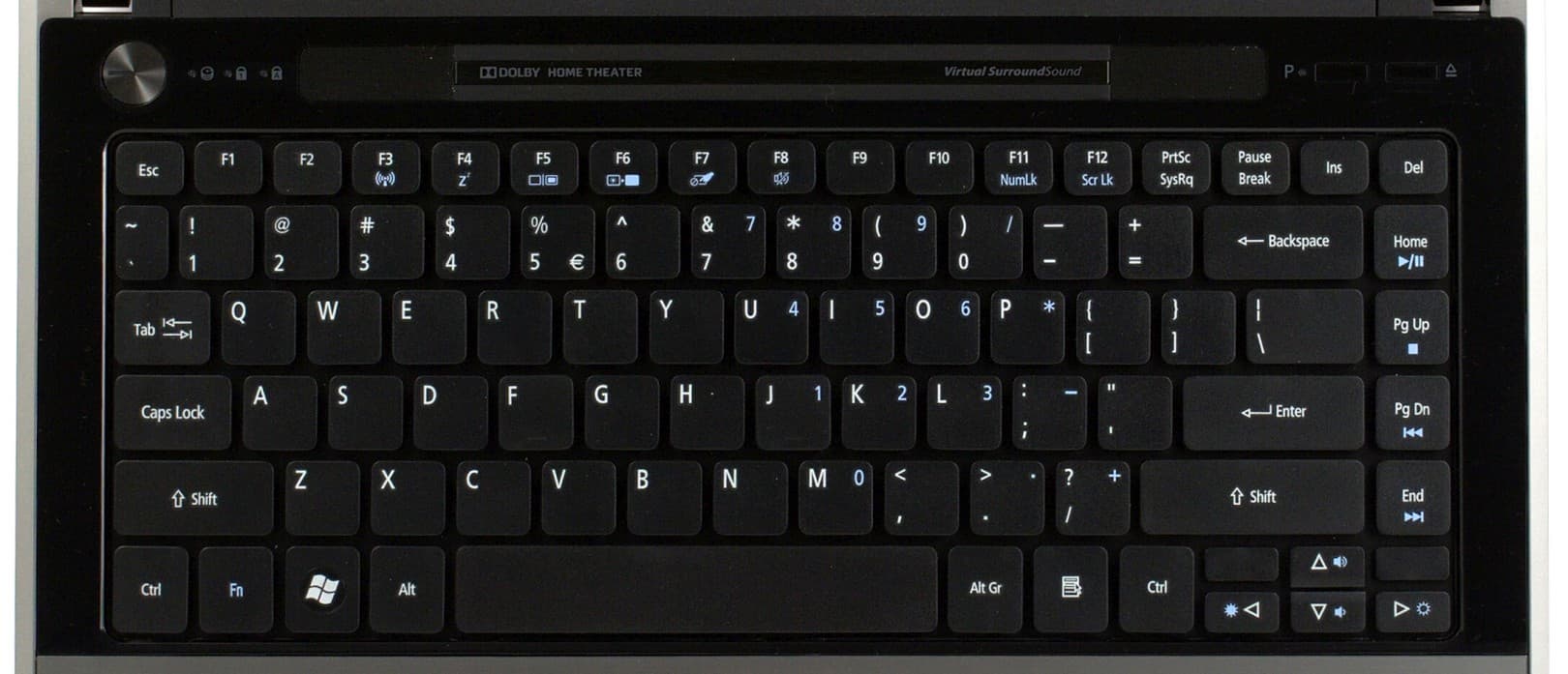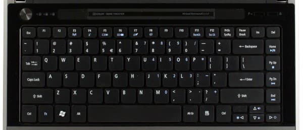 Клавиатура имеет достаточно тонкую окантовку по бокам, поэтому алфавитные клавиши получились полноразмерными, что становится уже излишне упоминать в контексте универсальных ноутбуков, поскольку даже в ультра-компактных удается создать комфортные условия для набора текстов. Промежутки между клавишами, вопреки современной моде, сохранены «как есть», но углублений для пальцев в центре клавиш не имеется, поэтому клавиатуру нельзя и назвать классической. А это не совсем хорошая новость с точки зрения печатания вслепую.