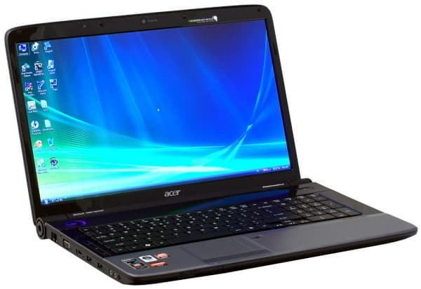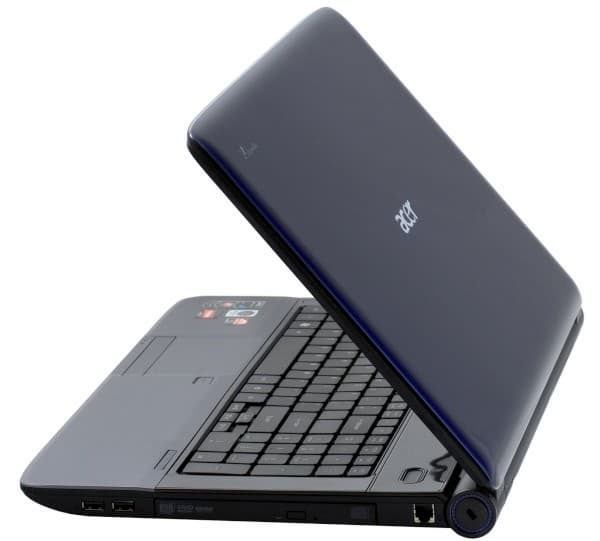 Несмотря на полноразмерные габариты для ноутбуков такого класса, выглядит Aspire 7535 достаточно элегантно благодаря темно-синей глянцевой крышке и плавным очертаниям корпуса. Вес 3,25 кг вполне соответствует категории ноутбуков с 17-дюймовым экраном, в данном случае еще и оснащенного достаточно мощной 6-ячеечной батареей, так что вероятно ноутбук окажется способным существовать и какое-то время без подпитки из розетки. Крышка не имеет защелки, но открывается туго, и будет сохраняться в закрытом положении, даже если вы будет носить его с собой в обычной сумке в незафиксированном состоянии. Что, вообще говоря, не рекомендуется в случае с любым ноутбуком. А в данном случае, вдвойне маловероятно, поскольку если уж задуматься над вопросом длительного пешего движения с ноутбуками такого класса, логичнее всего приобрести специальный рюкзак. В котором и само устройство не будет болтаться, и вес будет равномерно распределен, так что не испортит осанку, а даже в некоторой степени поспособствует ее улучшению.