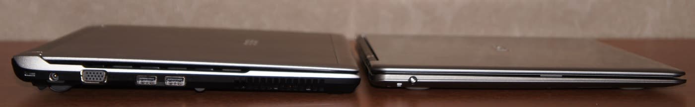 Как видите, U36sd гораздо толще. Фактически, по толщине он в самом тонком месте такой же, как Aspire S3 в самом толстом. При этом заявленная разница в толщине составляет всего 1,5 мм.